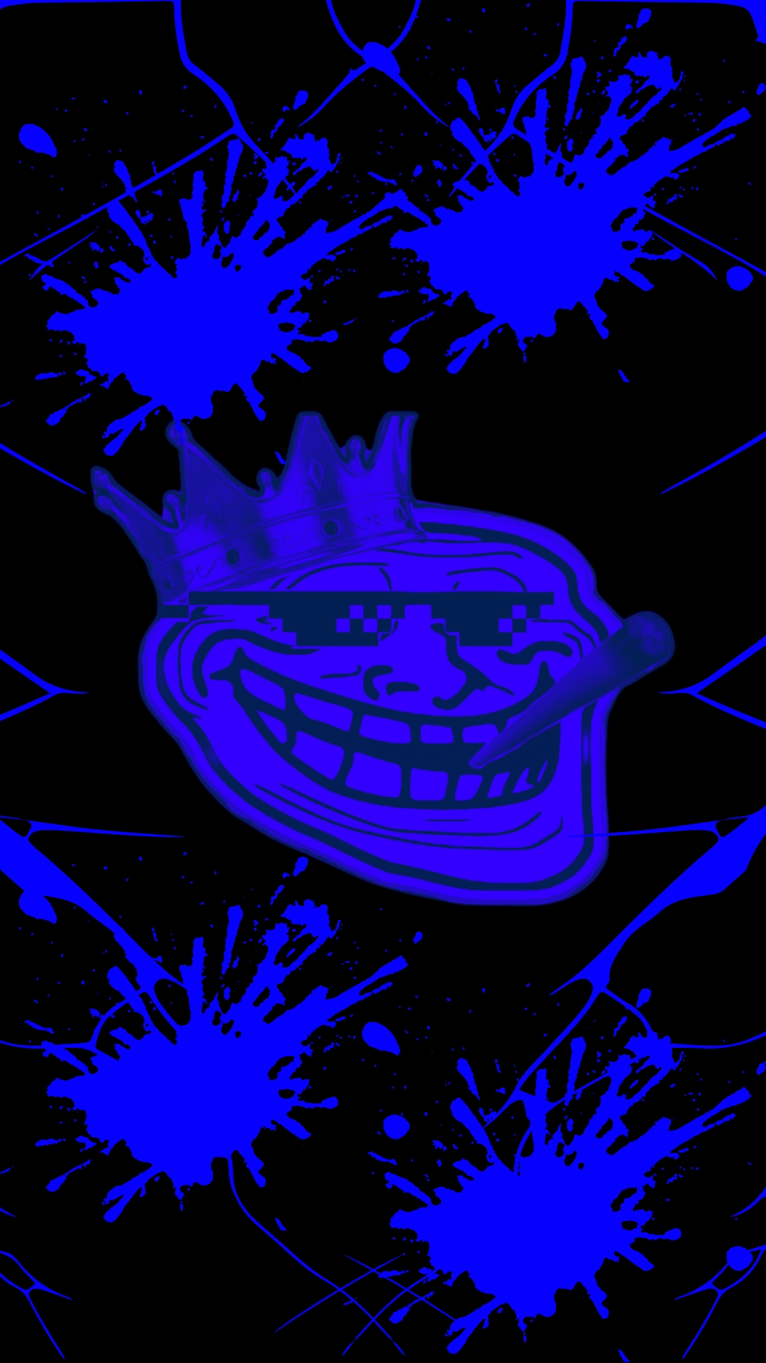 A creative and playful blue troll face wearing a majestic crown, ideal for setting as wallpaper on your device.