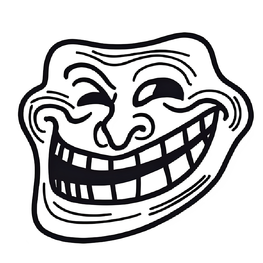 troll face png transparent black white smiling wide chin eyes squint cartoon thailand clipart – Explore Troll Face PNG Images in Various Styles